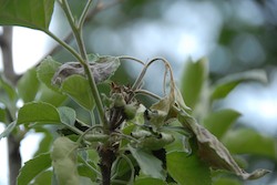 Fireblight on late blooming cider apple