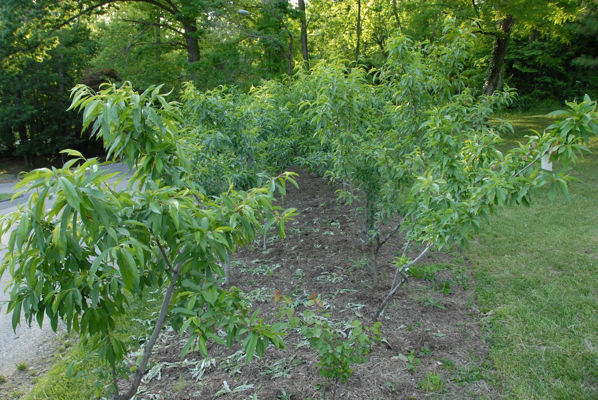 Caption: Peach double row - two rows 6' apart