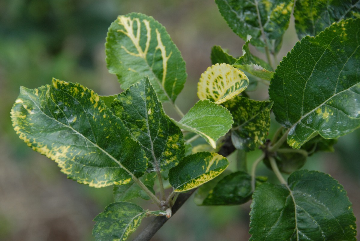 Caption: Likely Apple Mosaic Virus on Sam Young from Botner